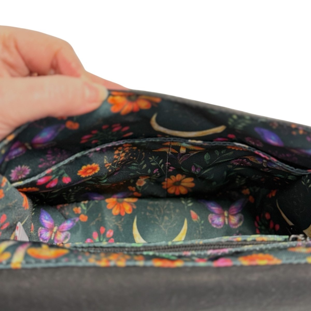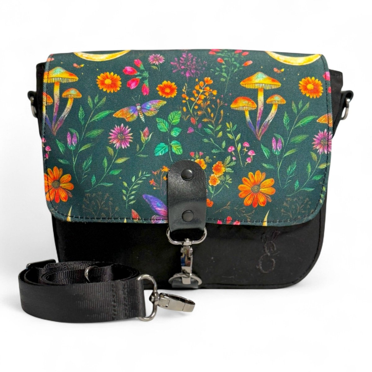 Limited edition Enchanted Woodland crossbody - never mass-produced. Forest enchantment meets premium organic oilskin in this investment piece. Handcrafted in Wales for individuals who choose mystical authenticity over mundane alternatives.